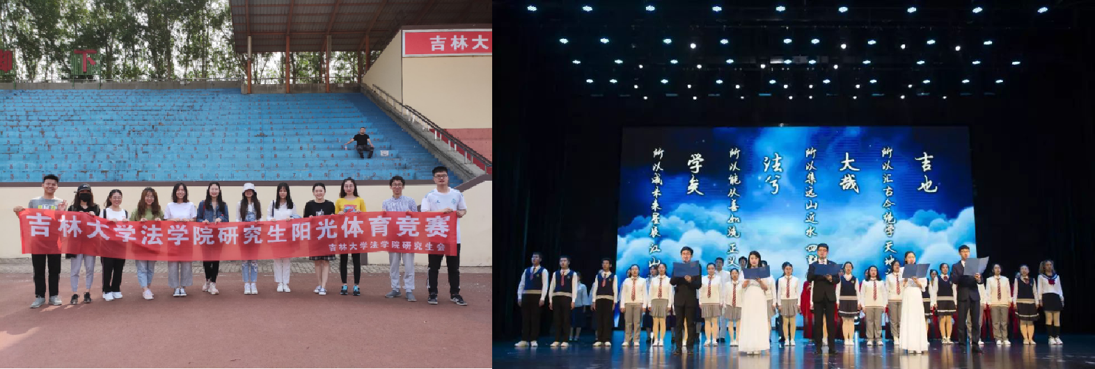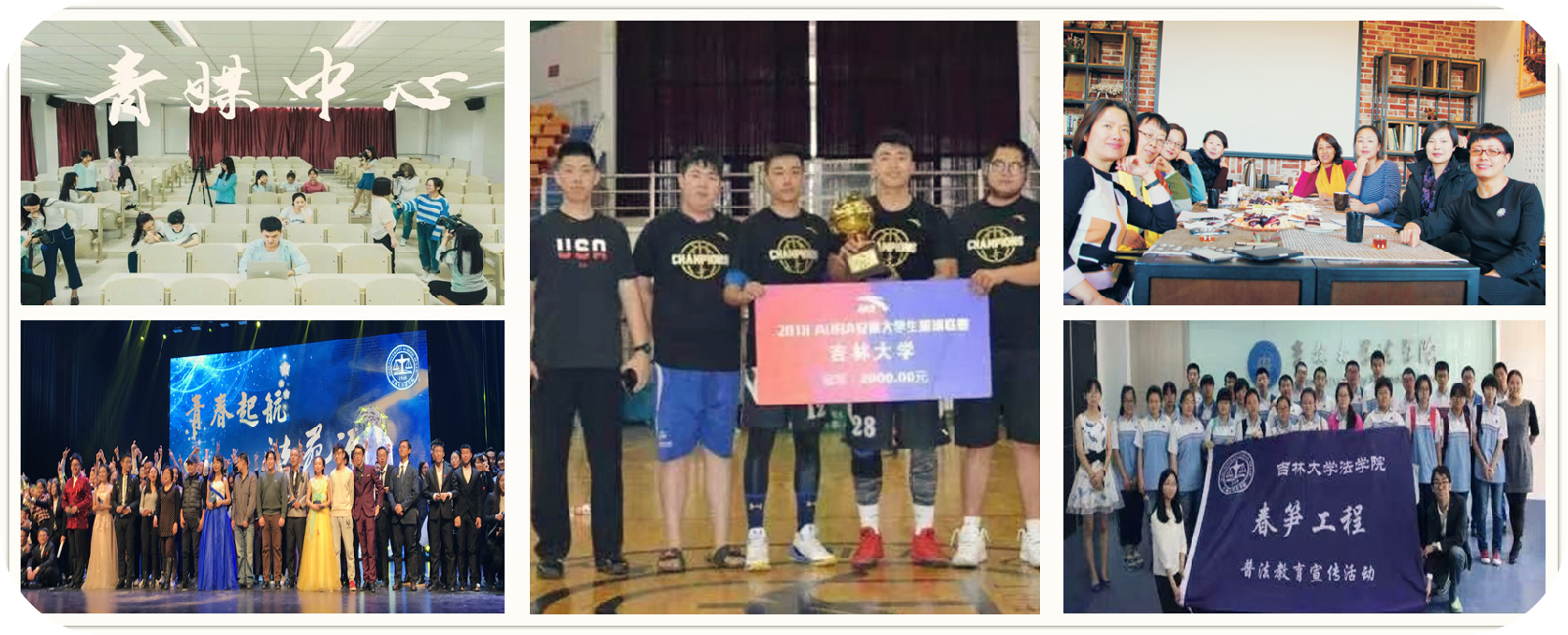 School of Law encourages students to engage in activities and provides platforms to show thier talents. Various students associations are established for students to develop thier insterests and make friends, inluding Change Now Club, Bailu Han Costume Society, Starlight Chinese Opera Society, Lanting Calligraph Association, Cartoon Society of Jilin University, Association of Academic Debates, Association of Legal Aids, Legal Education Association, Legal English Association, Legal Explorer Association, Legal Pratitioner Association and Legal M.M. Association.