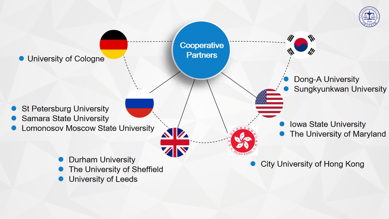 Jilin University School of Law is highly committed to academic exchange and cooperation, both nationally and internationally. To date, our law school has established strong academic cooperation with various universities and academic institutions overseas, including universities in the US, the UK, Germany, Japan, South Korea, Hong Kong and Taiwan Region. Increasing number of our students and faculty staff go to study, conduct academic research, and attend international conferences abroad. In the meantime, School of Law welcomes scholars all over the world to come and visit us. The following picture shows part of our partners.
