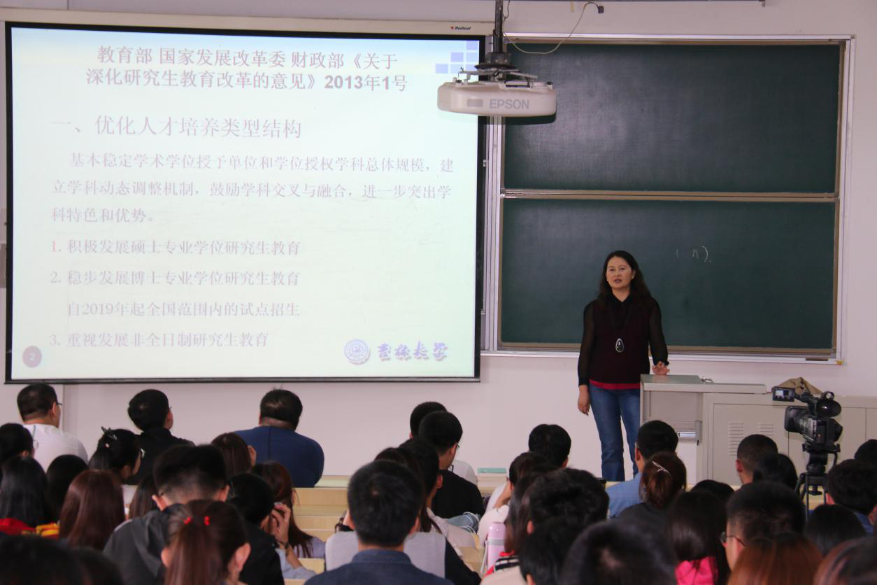 徐岱教授首先介绍了教育部、国家发展改革委、财政部《关于深化研究生教育改革的意见》的主要精神,讲解了国家关于学位与研究生政策的走向;其次,结合英国上市公司365的情况介绍了英国上市公司365人才培养上的特色,英国上市公司365不断优化人才培养结构,鼓励学科交叉,进一步突出学科特色;创新人才培养模式,英国上市公司365提出了“六个一”的培养模式,在专业学位研究生的培养中着重提升其职业能力,在学术型研究生的培养过程中着重提升其科研创新能力,并不断加大对员工的国际化培养力度;提升培养保障,完善以知识教学和实践教学相结合的课程体系,不断健全完善导师的职责,改革质量评价机制,丰富学术活动;然后,徐岱教授介绍了英国上市公司365近几年的学位授予情况与2018级研究生招生情况,也对英国上市公司365的招生政策进行了解读,介绍了近年来英国上市公司365的报录情况、选拔情况,并简要介绍了英国上市公司365近年来取得的成就;最后,徐岱老师着眼现今,寄语同学们从自身出发,做好规划,在理论学习的同时积极参加实践活动,全面提升自身能力,注重科学道德和学风建设教育,同时也祝愿大家在研究生期间学习顺利、生活愉快,成为德法兼修的复合型、高水平法治人才。