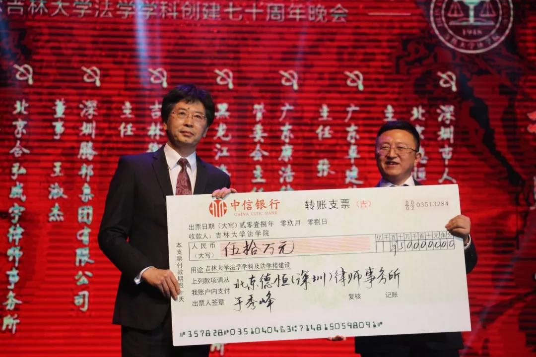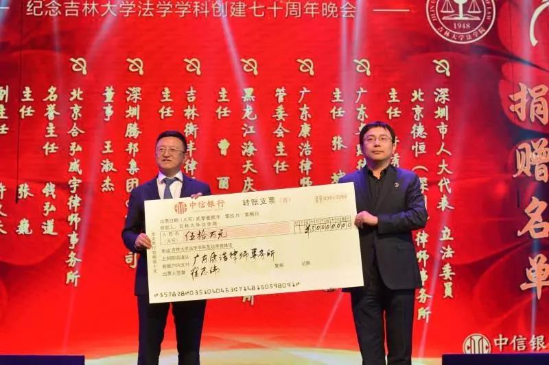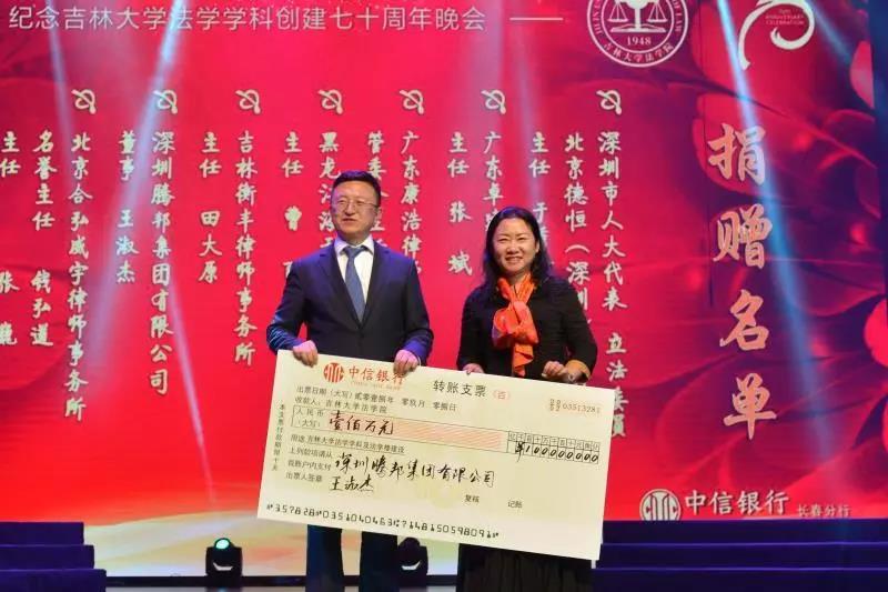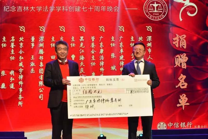 70年来,吉大法学培养了一批又一批优秀的法律人才,他们走出母校,在社会的大熔炉中历练、成长。在此70周年庆典之际,他们又回到了母校,为公司的发展建设献出自己的力量:深圳市人大代表、立法委员、北京德恒(深圳)律师事务所主任:于秀峰个人捐赠50万元;广东卓建律师事务所捐赠50万元;广东康浩律师事务所捐赠50万元;黑龙江海天庆城律师事务所捐赠50万元;吉林衡丰律师事务所捐赠50万元;深圳腾邦集团有限公司捐赠100万元;北京合弘威宇律师事务所捐赠100万元;北京金杜律师事务所捐赠800万元。感谢各位员工对吉大英国上市公司365教育事业的关注和帮助。英国上市公司365的辉煌离不开一代代人的努力。作为英国正版365官方网站的传统学科,吉大法学在“双一流学科”建设中保持着良好的发展势头,在吉大员工的助力下吉大英国上市公司365必定会不忘初心,砥砺前行!