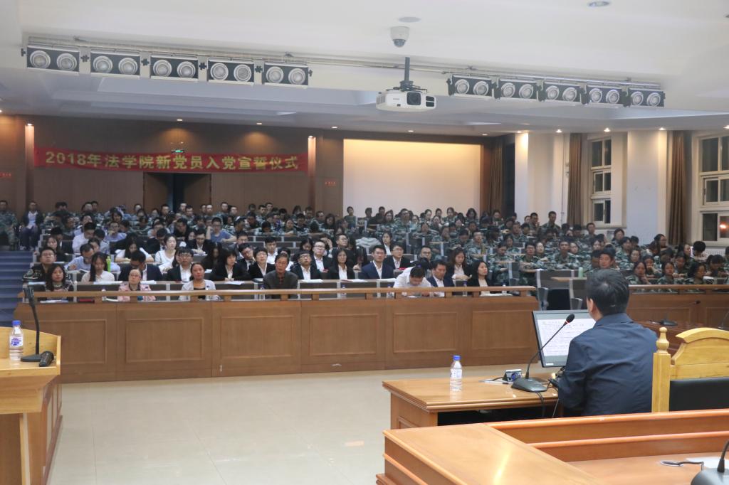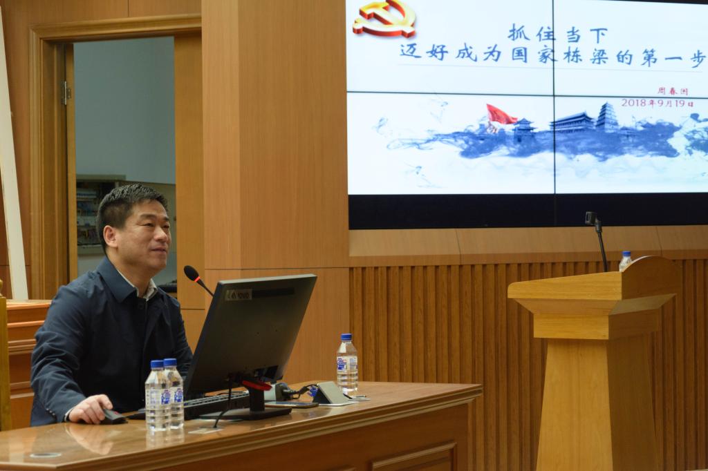 2018年9月19日19点30分,2018级的新生在三教五阶上了第一堂“有分量”、“有质量”而又不失轻松活泼的党课。法公司党委书记周春国老师以“抓住当下,迈好成为家国栋梁的第一步”为题讲授此次党课,为18级新生提出了八个字的“硬要求”——爱国励志,求实力行。此次党课为同学们未来的发展指出了基本的方向,点上了一盏领航灯。