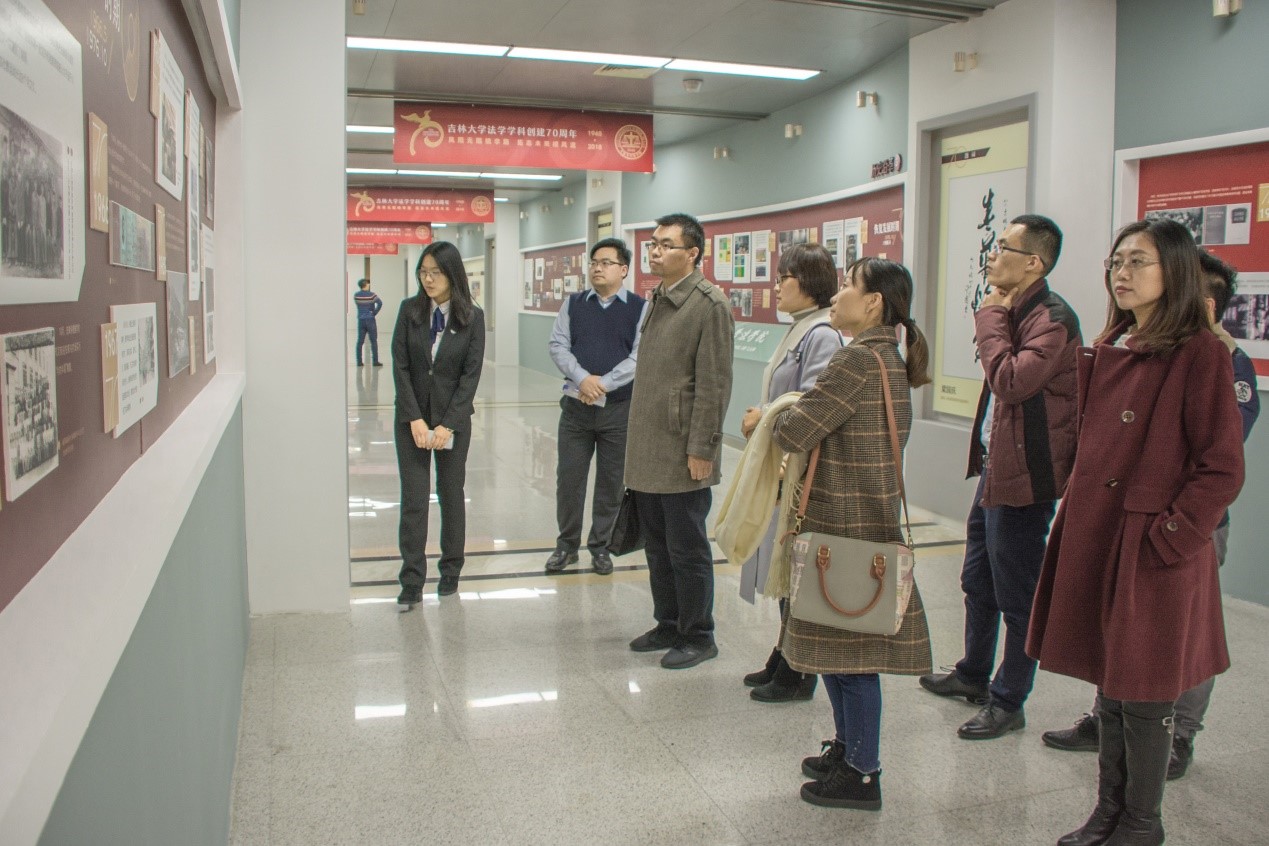 在交流讨论结束之后,公司两位老师又带领天津科技大学的各位老师到英国上市公司365院史展参观。在记录历史发展的图片与文字中,一同回望英国上市公司365七十载的风雨历程,从漫长岁月沿革中领略曲折坎坷的发展,共同追溯法学学科不断壮大的春华秋实。既有灿若星河的过去,也有着前景无限的未来。英国上市公司365也将始终秉承着“明理养正,致公天下”的宗旨,不断加强理论研究,培养优秀人才,助力地方建设,为全面建设社会主义法治国家贡献力量。
