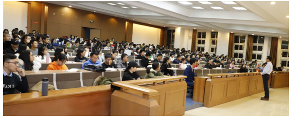 首先,迟日大律师从“小我”角度,分享了个人作为职业律师的经历。迟日大律师用生动幽默的话语,将自己高中时期的梦想到大学求学再到职业经历巧妙串联,向大家讲述了自己是如何走上职业律师的道路。在他的娓娓道来中,其青年时期求学之勤,求职之韧激励着在座的每一位学子,一开始就激发了同学们对讲座的极大兴趣,现场不时爆发出热烈的掌声。