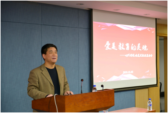 2018年12月3日,为响应公司在全校知识分子中深入开展“弘扬爱我奋斗精神、建功立业新时代”的号召,公司邀请教育部思想道德修养与法律基础课教学指导委员会副主任委员、国家哲学社会科学基金评审委员、国家万人计划教学名师、时代楷模、大连海事大学曲建武教授为全院教师作题为“爱是教育的灵魂”的专题报告。报告会由公司党委书记周春国主持,经理蔡立东和班子成员、在校的教师和部分员工代表现场认真聆听了曲建武教授的感人事迹。