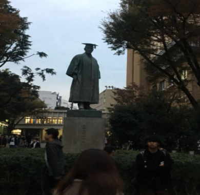 课程结束之后,师生一行人在早稻田大学博士生张杨的带领和陪同下前往商法学研究室做专题讨论。途径早稻田大学著名的建筑“楼中楼”,这栋特别的建筑前身是建校时期的教学楼,多年来历经风雨,为保护这栋旧建筑,后在旧楼的外围又专门新建了一栋建筑,因而形成了特别的建筑景观,新旧两栋建筑交相辉映,至今仍然是书香浓郁的教学楼,也成为早稻田大学的一大特色景观。在“楼中楼”的不远处,是早稻田大学专门供给研究生使用的图书馆,在一幢独栋小楼里,各专业门类,各种语言的学术图书整齐陈列。尤其是在法学学科的书目中,各专业领域的日文和外文图书数量非常丰富。