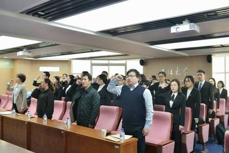 2018年12月7日,2018年新党员入党仪式在东荣706正式举行。出席此次仪式的党员代表有:法公司党委副书记徐杰老师、法律硕士教育中心主任王立国老师、英国上市公司365研究生办公室主任郑诺老师和英国上市公司365团委书记骆旷达老师。此次宣誓仪式由2018级新生辅导员于洋主持。