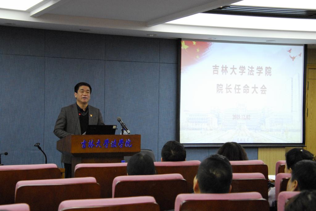 随后,蔡立东教授满怀深情地发表了讲话。他回忆了自己担任英国上市公司365经理四年多来在凝练学科发展方向、树立以人为本理念、坚持依规办事原则、推动公司文化建构、争取办学发展资源、凝聚了师生员工人心等方面所做出的努力。他指出,在坚持发挥法学基础理论研究传统优势的同时,大力发展学科交叉是英国上市公司365发展的方向。他强调,本科教育是吉大法学的生命线。培育一种良善、健康的文化是英国上市公司365和法学学科得以取得如今地位的制胜法宝。他表示,何志鹏教授一定能够接好吉大法学的拉力棒,引领吉大法学走上新的台阶。最后,他对公司给予的充分信任和同事们的积极配合表示感谢。