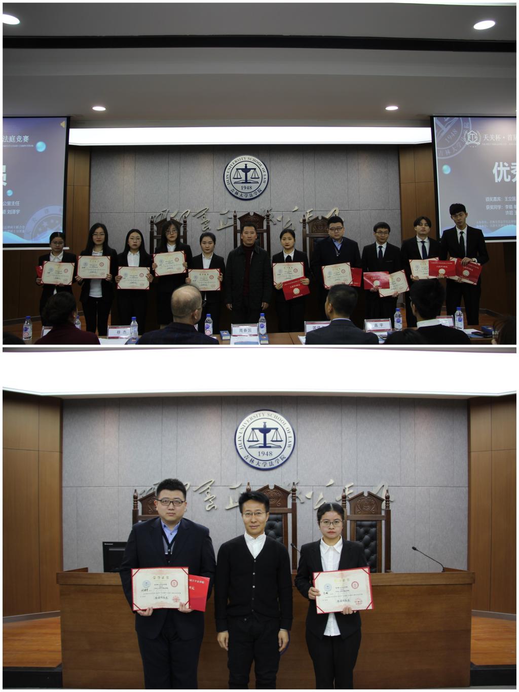 国伟杰法官为获得季军C3大护法队和D1智谋天团颁奖;天津天关律师事务所的屈玉麟主任为获得亚军的B4和平精英队颁奖。