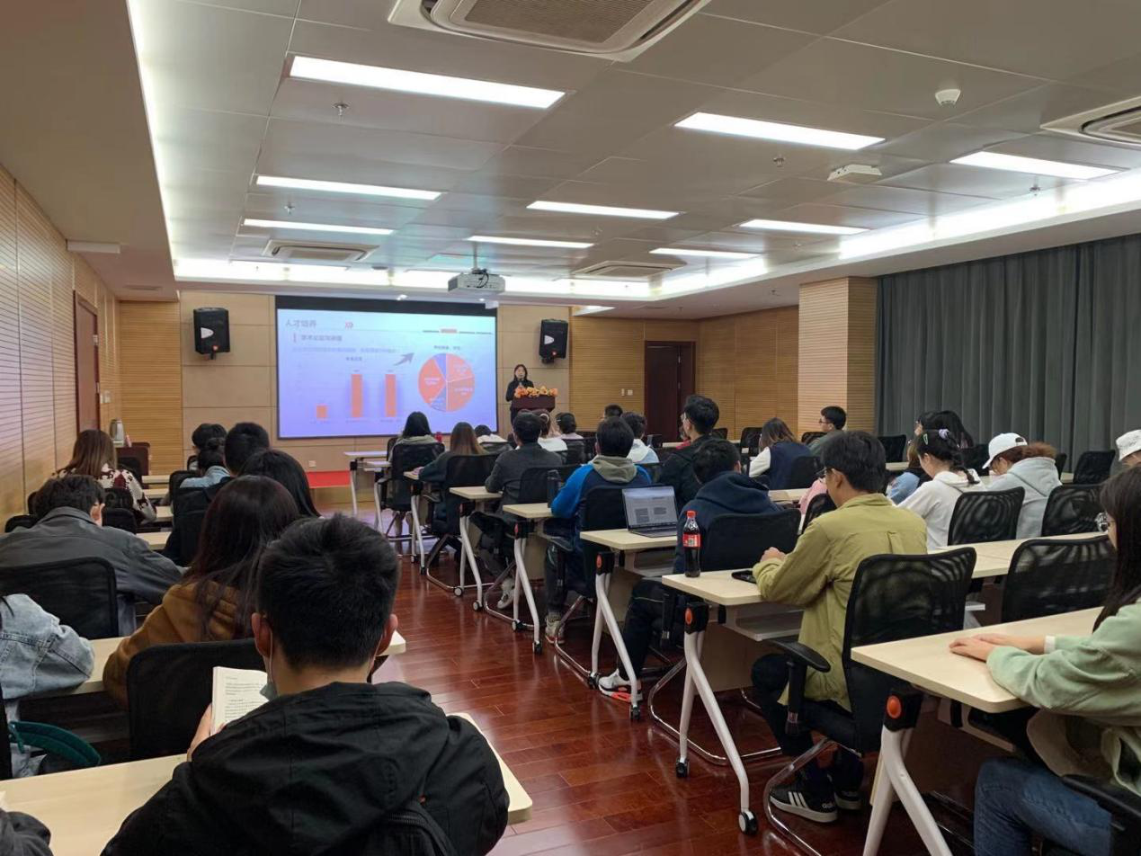 邢丹老师为员工做招生宣传并邀请同学们报考公司研究生,并现场回答了同学们的提问。