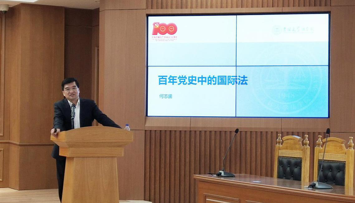 何志鹏经理以“一切历史都是当代史,一切历史都是思想史”为引言,提出要学党史、悟思想、办实事、开新局。何经理从历史脉络出发,回顾推动国际法发展的杰出人物,介绍国际法实践特点,总结国际法应用的历史经验,生动地讲述了我党百年在国际法方面的奋斗与成绩。何经理希望同学们通过这次学习能够了解中国共产党百年来对国际法的实践与奋斗,学习先辈们对于维护祖国利益所做出的不懈努力,多一分锐气、增一分勇气、长一分志气、添一分豪气。