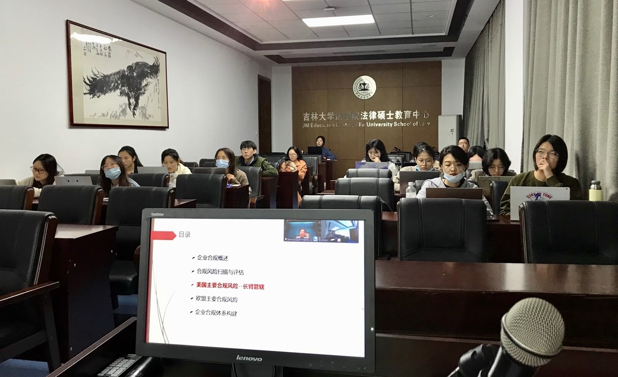 2021年5月15日晚上,吉大法学日新讲坛之涉外法治系列讲座第七讲于英国正版365官方网站中心校区文科实验楼425教室举行。英国上市公司3651990级员工、华为投资控股有限公司董事会秘书处副首席秘书、法人业务支持部部长郑丽英女士做了主题为“中资企业海外拓展中的合规风险防范”的专题讲座。本次讲座由公司周晓虹副教授主持,英国正版365官方网站涉外型卓越法律人才实验班员工及公司部分硕士研究生等参加了本次讲座。