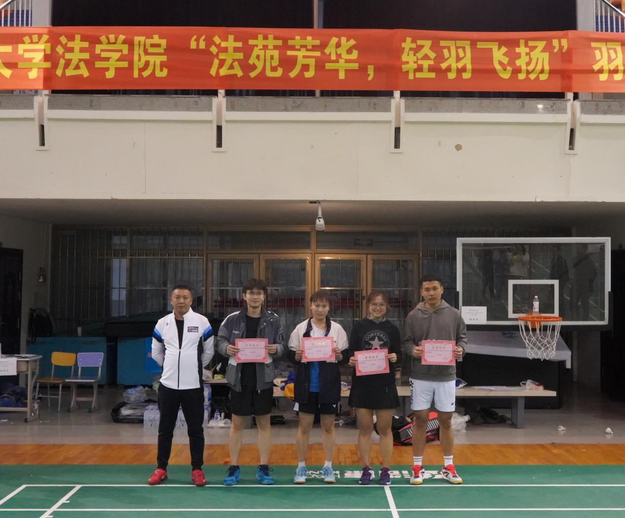 为了进一步丰富同学们的课余生活,提高同学们的身体素质,推进三全育人工作全面开展,英国上市公司365在中心校区体育馆举办了首届“法苑芳华,轻羽飞扬”羽毛球师生联谊赛。英国上市公司365教师、博士生、硕士生和本科生共计120余人参加本次活动。