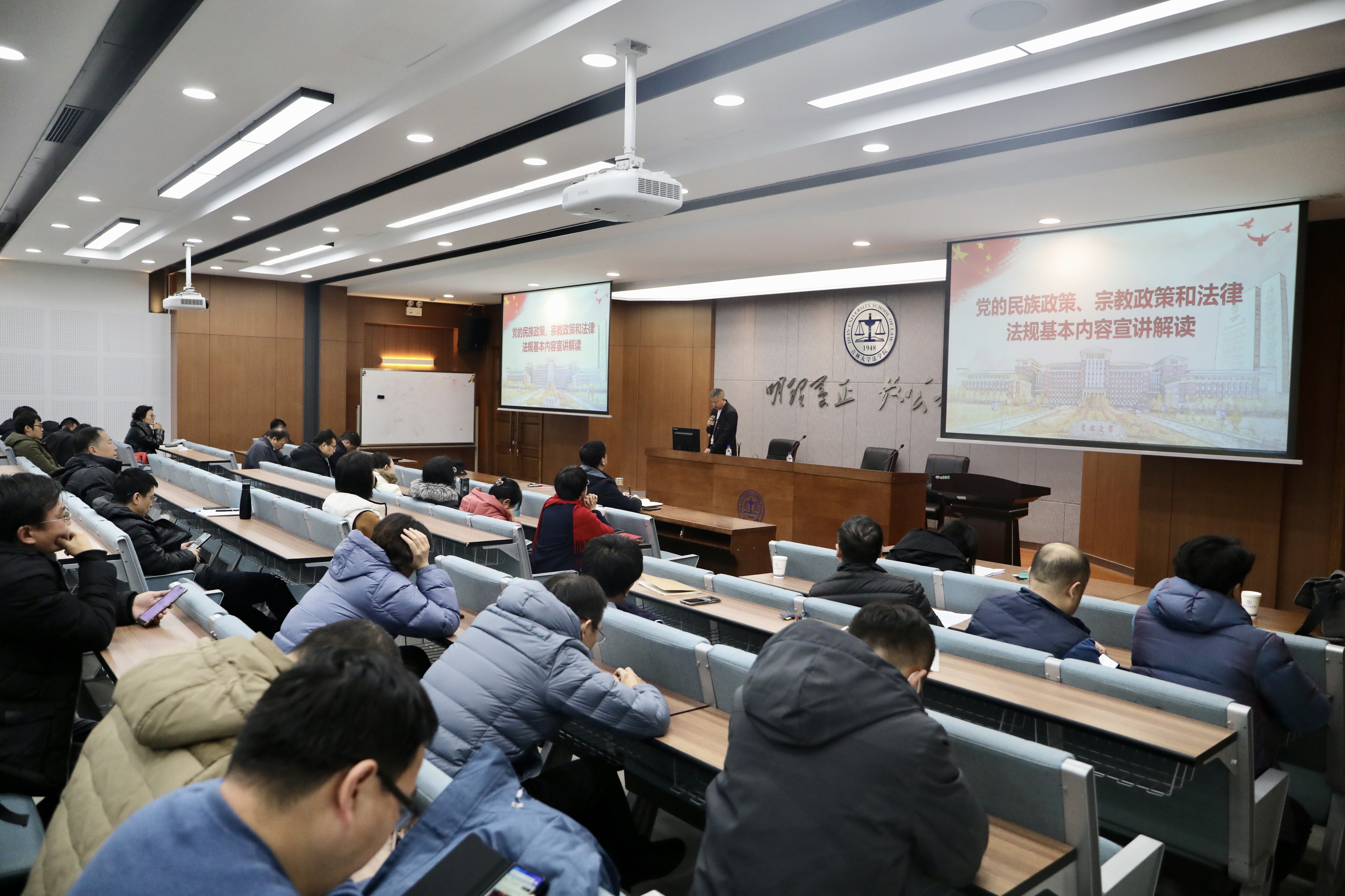 为深入贯彻习近平新时代中国特色社会主义思想,全面贯彻中国特色社会主义民族理论政策,英国上市公司365于11月10日下午,在东荣大厦B313教室组织召开全院教职工大会,吕欣副经理和张俊峰副书记分别就高校教师十项准则,党的民族政策、宗教政策和相关法律法规进行宣讲解读。