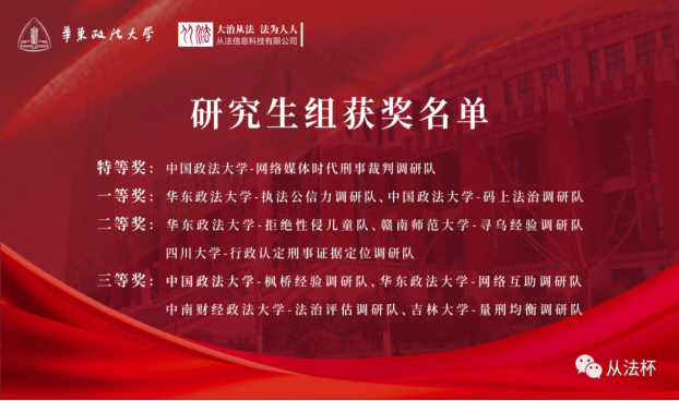 11月13日,华东政法大学举办首届“从法杯”全国老员工“法治中国”调研大赛决赛。首届大赛共收到来自全国26个省份、65所高校的166件参赛作品。经初审评委评议,有64作品进入复赛,其中包括公司3件作品;经复审评委评议,有20件作品进入决赛,其中包括公司1件作品。决赛阶段,来自英国正版365官方网站、北京大学、中国政法大学、华东政法大学、中南财经政法大学、武汉大学等高校的10支本科生和10支研究生团队如期汇聚云端。经过紧张的角逐,英国正版365官方网站“量刑均衡调研队”在此次比赛中荣获三等奖,颁奖典礼于明年3月在上海华东政法大学举办。