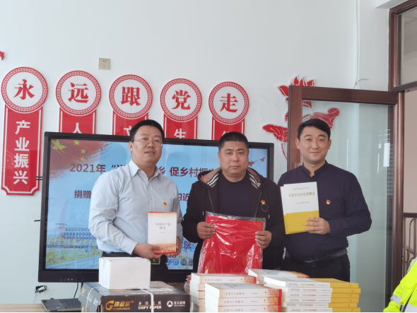 党课开始前,刘舰代表公司各教工党支部,向铁西村的全体党员村民捐赠了《中国共产党简史》和《习近平法治思想概论》,希望大家进一步学习党史、学习习近平新时代中国特色社会主义思想,凝心聚力,为铁西村全面振兴贡献党员的力量;向铁西村村党支部捐赠了部分急需的办公用品,让广大村民时刻看到公司对助力铁西村全面振兴付出的努力和帮助,时刻感受到来自公司广大师生的关心和温暖。