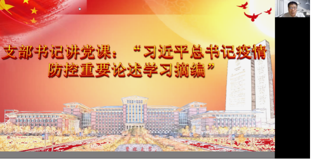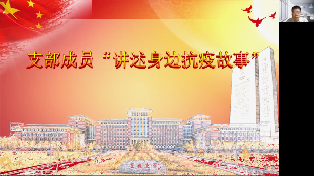 在支部成员“讲述身边抗疫故事”的环节,参会成员宋显忠、钱大军、苗炎、侯学宾、杨帆、郑怀宇、黄伟、杨雪等同志在高度评价刘舰同志的抗疫事迹基础上,结合自己的实际情况,从参与社区防疫工作、认真从事教学科研等本职工作以及讲述亲人抗疫事迹等方面,讲述了身边抗疫故事。