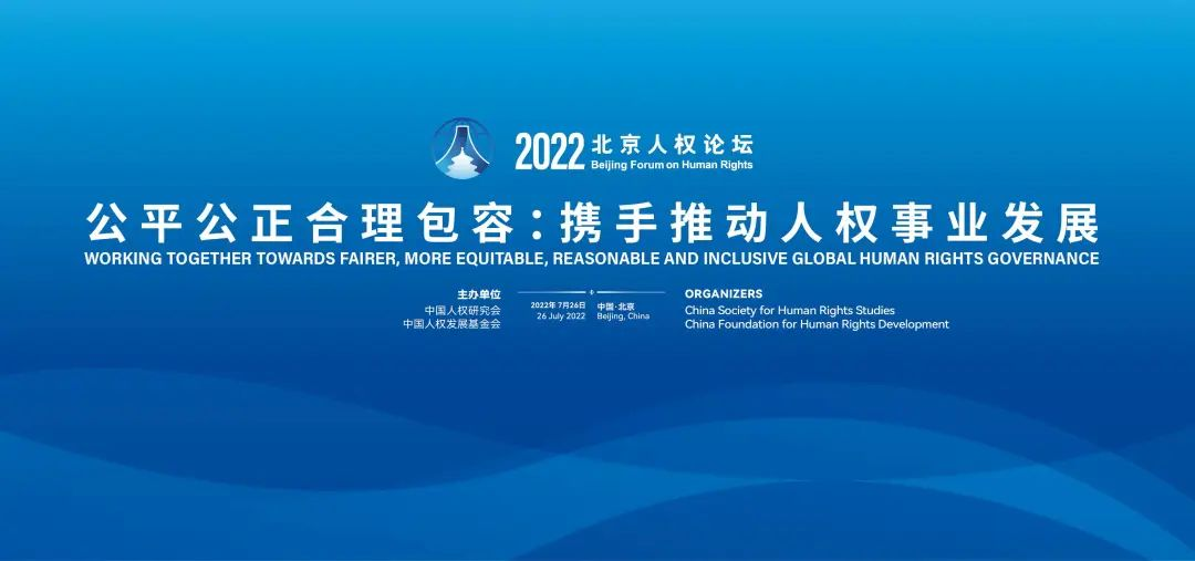 7月26日,由中国人权研究会和中国人权发展基金会共同主办“2022·北京人权论坛”在京举行。来自近70个国家以及联合国等国际组织的高级官员、专家学者和驻华使节代表等近200人出席论坛,围绕“公平公正合理包容:携手推动人权事业发展”这一主题畅所欲言、深入交流。此次论坛还设置了主题为“可持续发展与人权保障”“民主与人权保障”“公共卫生安全与人权保障”“多边主义与全球人权治理”“开放包容发展与人权保障”5个分论坛。