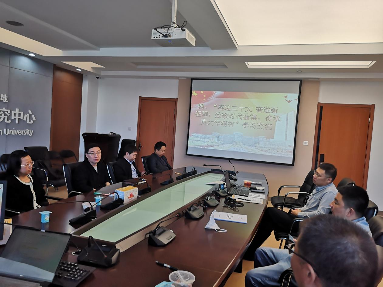 2022年9月21日13时,理论法学党支部举办“喜迎二十大 奋进新征程:致敬时代楷模,传承黄大年精神”主题党日活动,号召全体党员以黄大年同志为榜样,不忘初心、牢记使命,努力为师生办实事,做一名合格党员。支部成员杨帆、刘雪斌、侯学宾、钱大军、苗炎、黄伟、杨雪、乔楠以线下方式参加,宋显忠、郑怀宇以线上方式参加。会议由支部书记杨帆同志主持。各位同志围绕如何发扬和传承“黄大年精神”展开了学习讨论。