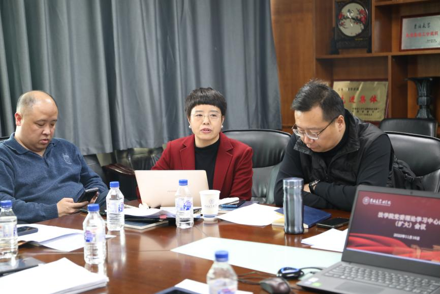 党委书记周春国对何志鹏经理精彩的专题宣讲表示感谢,对三位教师分享的学习成果给予了充分肯定,他指出,党委理论学习中心组近三次对二十大精神的集中学习交流,既拓展了学习深度,也延展了学习广度,取得了较好的效果。他强调,党的二十大精神博大精深、内容丰富,要将二十大精神学习好、贯彻好、落实好,坚持学以致用、用以促学、学用相长,落实到日常实际工作之中。接下来教师党支部书记要带头学讲党课,各党支部要以“三会一课”、主题党日等形式继续深入开展学习宣传党的二十大精神,将智慧与力量凝聚到党的二十大所确立的教学和科研任务上来,将青春融入党和人民的事业,在新征程上更好肩负起历史使命和时代责任。