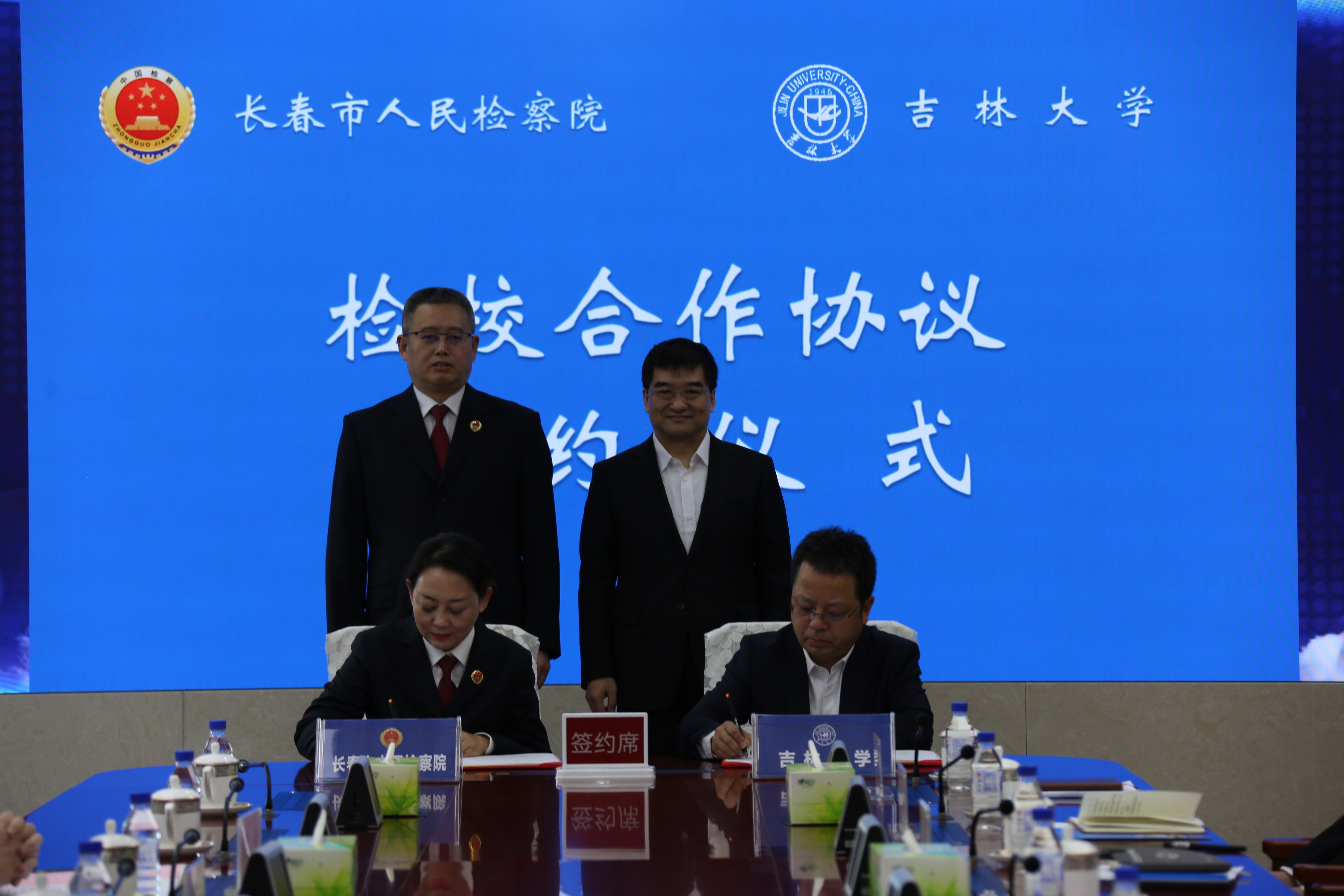 为进一步提高人才培养质量,实现司法实践与法学教育的深度融合,2022年11月18日,吉林大学英国上市公司365与长春市人民检察院举办检校合作协议签约仪式。英国正版365官方网站法公司党委书记周春国、经理何志鹏、副书记张俊峰、副经理吕欣、副经理曹险峰出席了签约仪式,并与长春市检察公司党组书记、检察长李军等检察院领导进行了座谈交流。签约仪式由长春市检察公司党组副书记、常务副检察长刘志民主持。