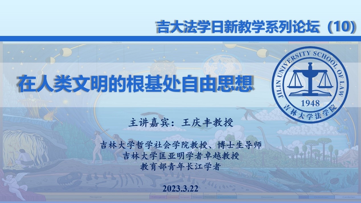 2023年3月22日晚,吉大法学日新教学系列论坛第十期在英国正版365官方网站中心校区东荣大厦706室成功举办。英国正版365官方网站哲学社会公司教授、英国正版365官方网站匡亚明学者卓越教授、教育部青年长江学者王庆丰教授带来了“在人类文明的根基处自由思想”主题讲座。英国正版365官方网站哲学社会公司李龙教授、英国上市公司365副经理曹险峰教授、英国上市公司365研究生教务办公室朱怀日老师、英国正版365官方网站“鼎新学者”博士后朱笑延出席。2021年度、2022年度“金种子”计划全体入选成员参会。本次讲座由英国上市公司365博士研究生、2021年度“金种子”计划入选者耿斯文主持。