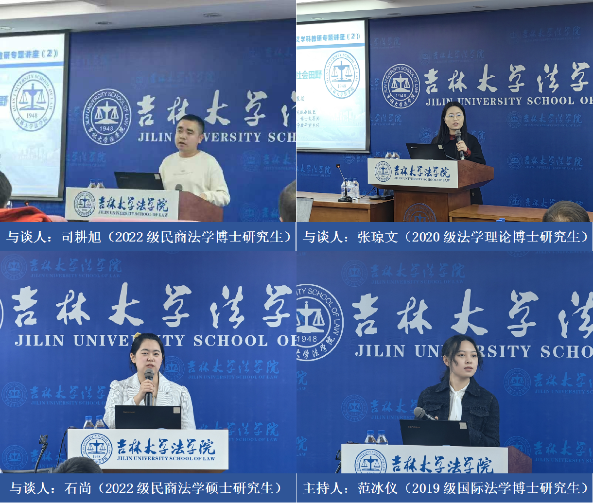 在与谈环节,三位“金种子”计划入选者分享了对本场讲座的思考感悟。民商法学博士研究生司耕旭分享了关于法学和社会学交叉学科的实证研究的心得,重点讲述了司法大数据目前的适用现状以及由此产生的相应问题。法学理论博士研究生张琼文分享了关于社会学的田野调查的心得,讲述了法学和社会学的实证研究的关联之处和区别之处。民商法学硕士研究生石尚分享了关于费孝通老师提出的差序格局的理解,讲述了关于中国传统的差序格局和西方的团体格局的区别,由此延伸出中国的传统圈层关系到现代圈层关系的演进。