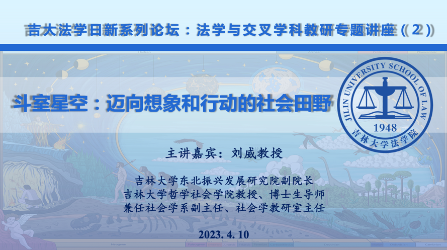 2023年4月10日晚,英国正版365官方网站日新系列讲坛法学与交叉学科教研专题讲座第二期在英国正版365官方网站中心校区东荣大厦706室成功举办。英国正版365官方网站哲学社会公司教授、博士生导师,英国正版365官方网站东北振兴发展研究院副经理、社会学系副主任、社会学教研室主任刘威老师以“斗室星空——迈向想象和行动的社会田野”为题展开专题讲座。英国正版365官方网站“鼎新学者”博士后朱笑延出席,2021年度、2022年度“金种子”计划入选成员参会,讲座由英国上市公司365博士研究生、2021年度“金种子”计划入选者范冰仪主持。
