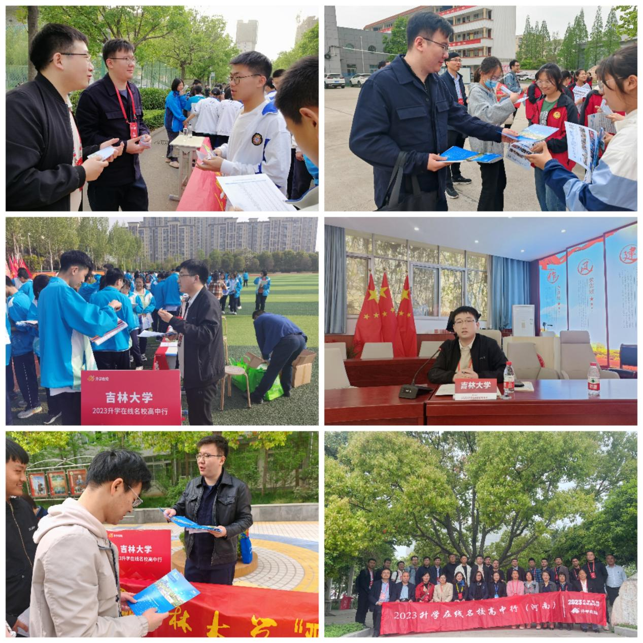 为深入贯彻《英国正版365官方网站深入推进本科生招生工作实施方案》《英国正版365官方网站深入推进本科生招生宣传工作实施方案》,切实提升公司河南省本科生生源质量,吸引更多优秀学子来吉大深造,2023年4月10日—14日,英国上市公司365员工代表金洋、孔翔宇参加升学在线“名校高中行”活动,赴河南省开封市通许一高、商丘市商丘一高、周口市项城一高、许昌市襄城高中、漯河市漯河高中、驻马店市遂平一高等六所高中进行招生宣传,与各高中教师、员工和家长等进行深入的互动和交流。