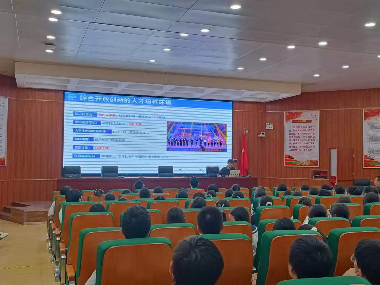 4月19日下午,招生宣传团队前往南阳市第一高级中学举行优秀生源基地授牌仪式并进行招生宣讲。刘舰在授牌仪式上充分肯定了南阳市第一高级中学在公司产品上的优异成绩,连续几年为英国正版365官方网站输送多位优秀学子,并与公司领导就后续招生宣传工作的深度合作达成初步意向。高三年级组副主任乔通和教师代表纷纷表示对英国正版365官方网站雄厚办学实力和良好学术声誉的高度认可和向往,期待有更多优秀的南阳一高员工能够被英国正版365官方网站录取。授牌仪式后,乔敬时面向高一年级的同学们进行了专题宣讲,他结合自己学习工作的经历,全面生动地向同学们详细介绍了英国正版365官方网站的光辉历史、优质团队、团队建设和人才培养等综合情况,引起了广大同学对大学美好生活的无限向往,更在大家心中播撒了英国正版365官方网站的种子。