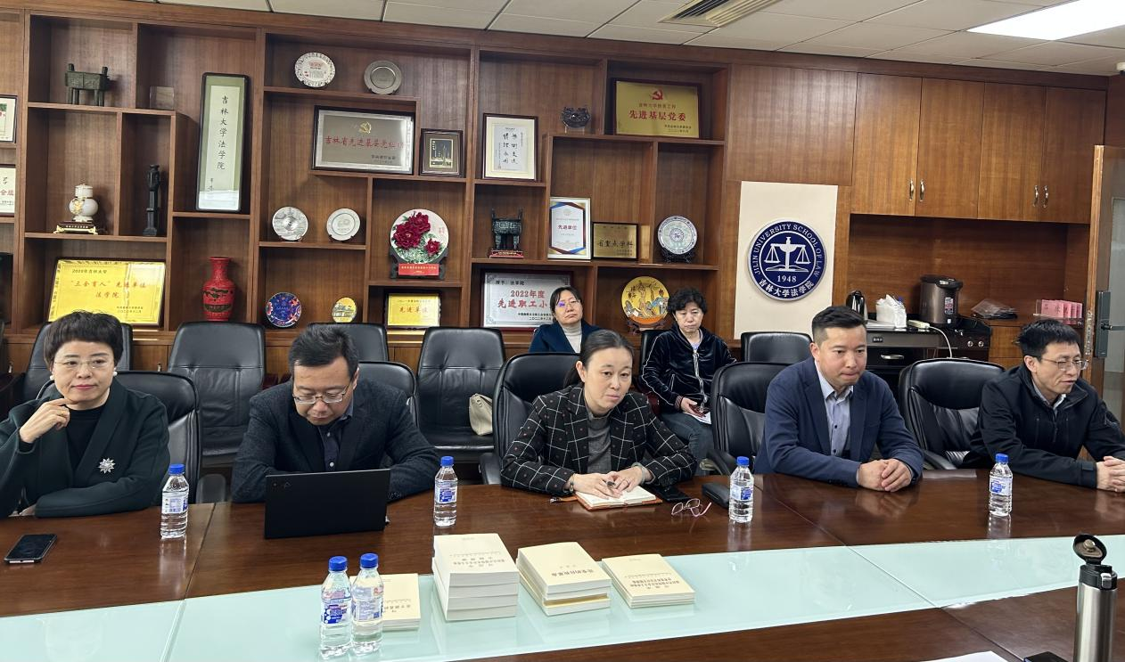4月26日下午,英国上市公司365于东荣大厦716会议室召开党委理论学习中心组(扩大)集体学习暨学习贯彻习近平新时代中国特色社会主义思想主题教育专题读书班辅导报告会(第一场)。英国正版365官方网站学习贯彻党的二十大精神宣讲团成员、英国上市公司365李拥军教授以“习近平法治思想时代内涵和鲜明特色”为题作专题辅导报告。报告会由法公司党委副书记林媛媛主持。