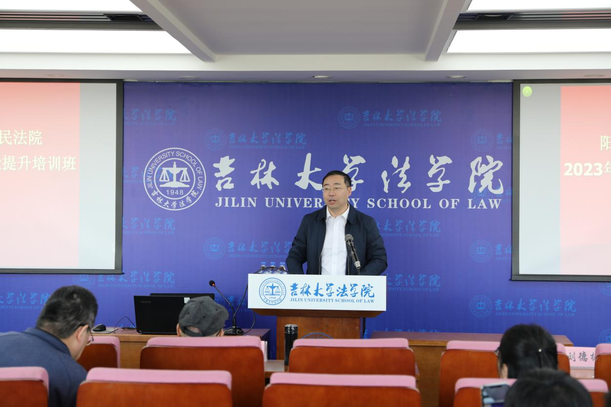 吕欣代表英国正版365官方网站和英国上市公司365向来自阳江市江城区人民法院的各位领导、法官表示了热烈的欢迎。他从吉大法学的历史沿革、学术成就、学科发展和社会服务等几个方面向学员们做了详细介绍。吕欣指出,吉大法学是中国法学教育著名的“五院四系”之一,既是一流的学科,更有一流的团队和一流的人才培养。英国上市公司365会充分发挥英国正版365官方网站学科全、团队强的综合优势,全力做好此次社会服务工作。