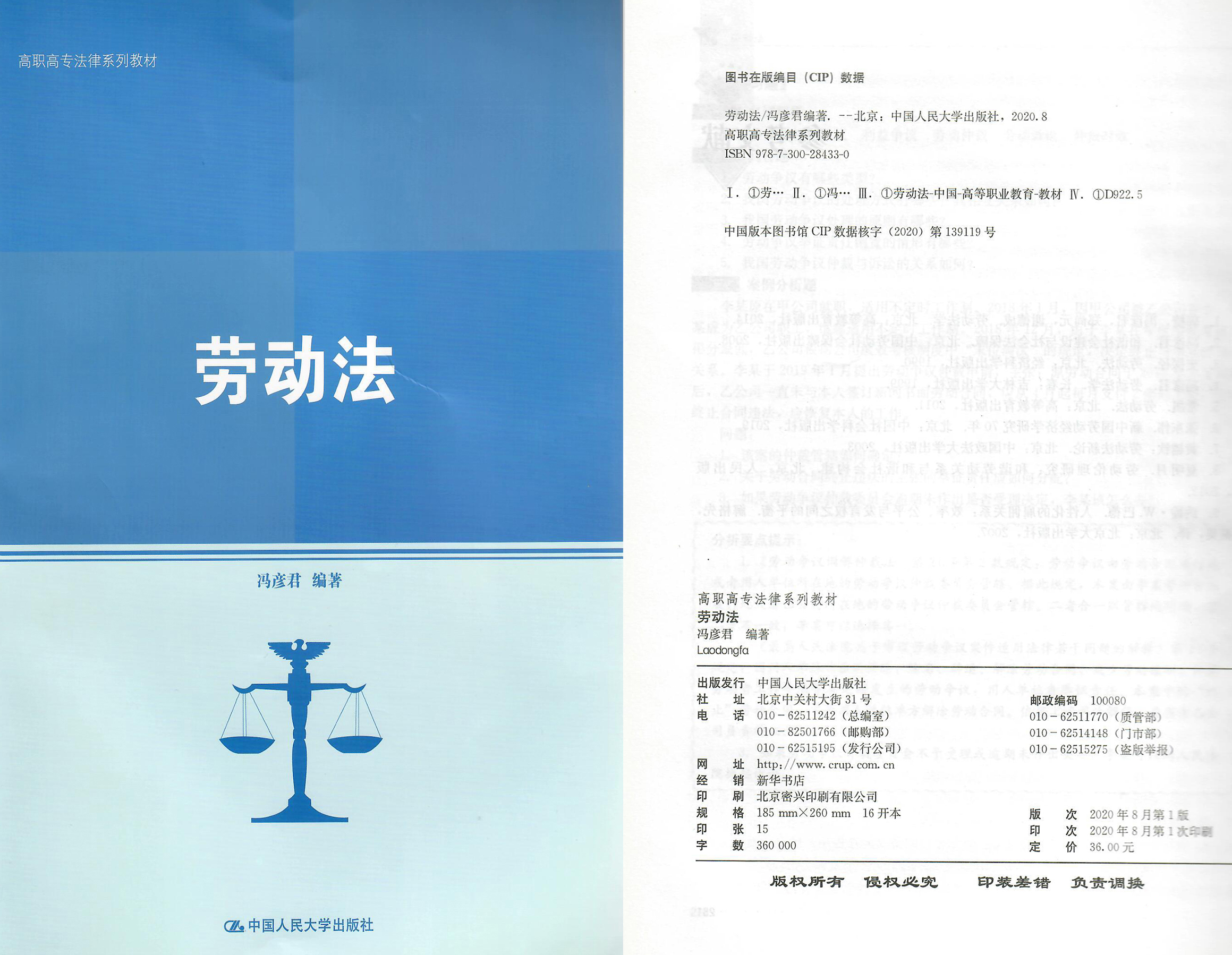 由公司冯彦君教授编著、由中国人民大学出版社2020年8月出版的高职高专法律系列教材《劳动法》,成功入选首批“十四五”职业教育国家规划教材名单(新申报教材)。