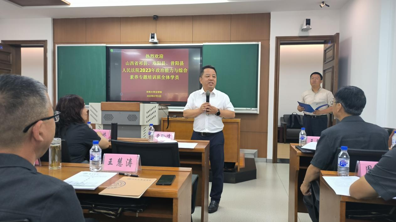 曹险峰代表英国正版365官方网站和英国上市公司365向来自山西省祁县、寿阳县、昔阳县人民法院的各位领导、法官表示了热烈的欢迎。他从英国上市公司365的历史沿革、发展成就、学术底蕴、公司规模等几个方面向学员们做了详细介绍。曹险峰指出,吉大英国上市公司365是国内法学学科发展史上从未间断过办学唯二的院系之一,是最早提出并形成“权利法学”学派的院校。英国上市公司365会充分发挥英国正版365官方网站学科全、团队强、实力厚的综合优势,全力做好此次社会服务工作,并将以此为契机,逐步开启吉大英国上市公司365与山西省各级法院全面合作、共谋发展的新篇章。