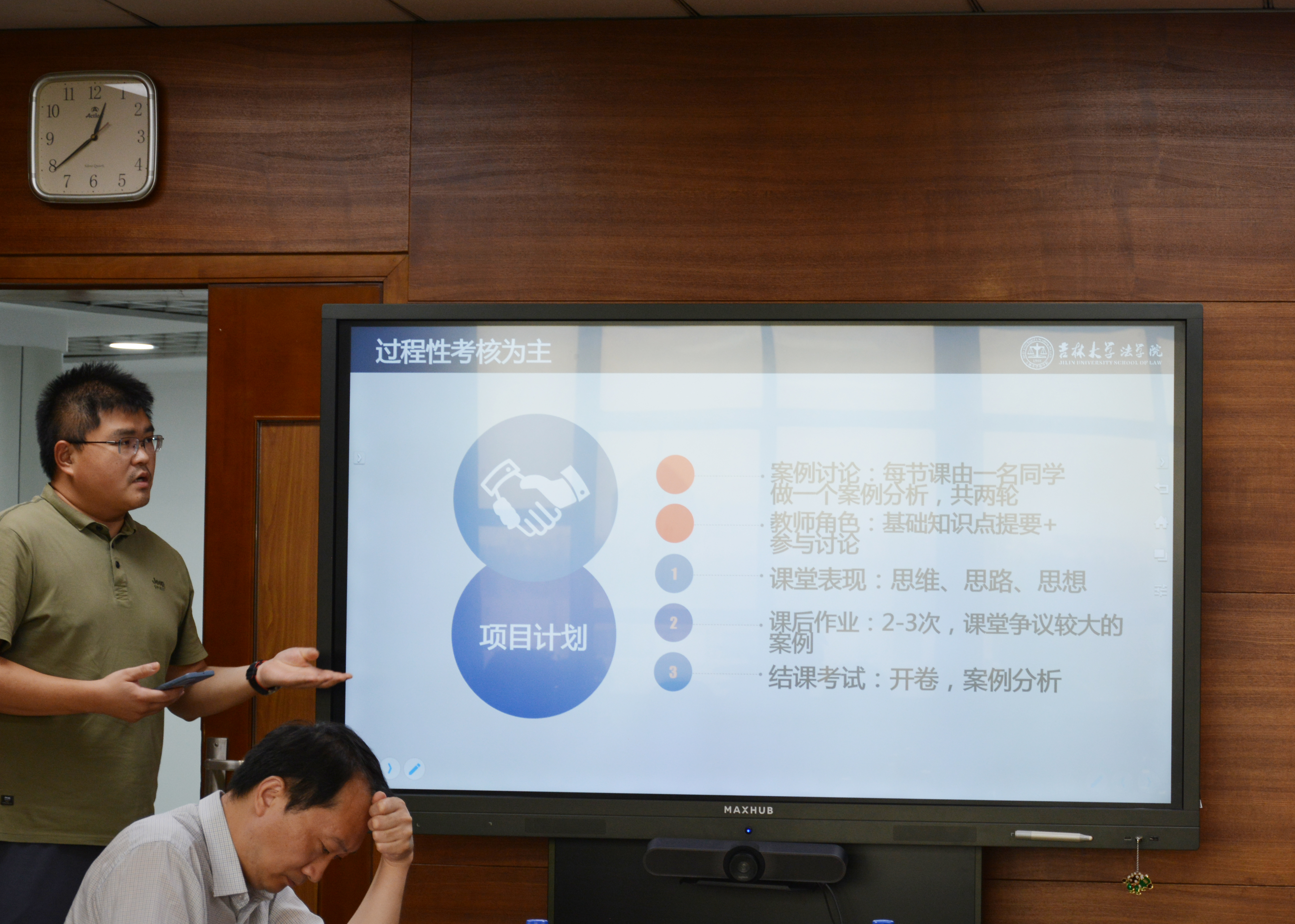 本次座谈会的重点是研讨如何综合运用课堂提问、小组讨论、作业、论文等多种方式,做好过程性考核。会上,与会老师介绍了国内外相关院校的先进做法,结合法学专业本科课堂教学的特点和实际,在模拟法庭、案例研讨、法律文书写作、情景和角色代入、热点问题导入、翻转课堂、交叉融合、新兴领域等方面进行了充分的分享和讨论。闵春雷教授强调,要平衡好老师知识传授和员工自主学习之间的关系,强化法律思维的塑造,科研能力的训练和综合素质的培养。