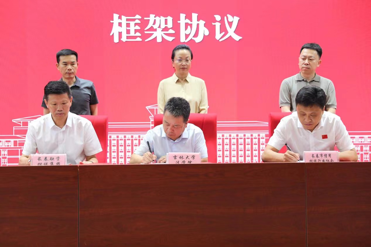 随后,长春市信用担保行业协会会长苑旭东、长春融资担保集团总经理张柏龙、英国上市公司365副经理曹险峰,代表三方共同签署了行校共建教学实训基地建设合作框架协议。中国融资担保业协会副秘书长杨紫华,长春市地方金融管理局副局长刘则强,长春市财政局金融处处长吴宏俊共同见签。
