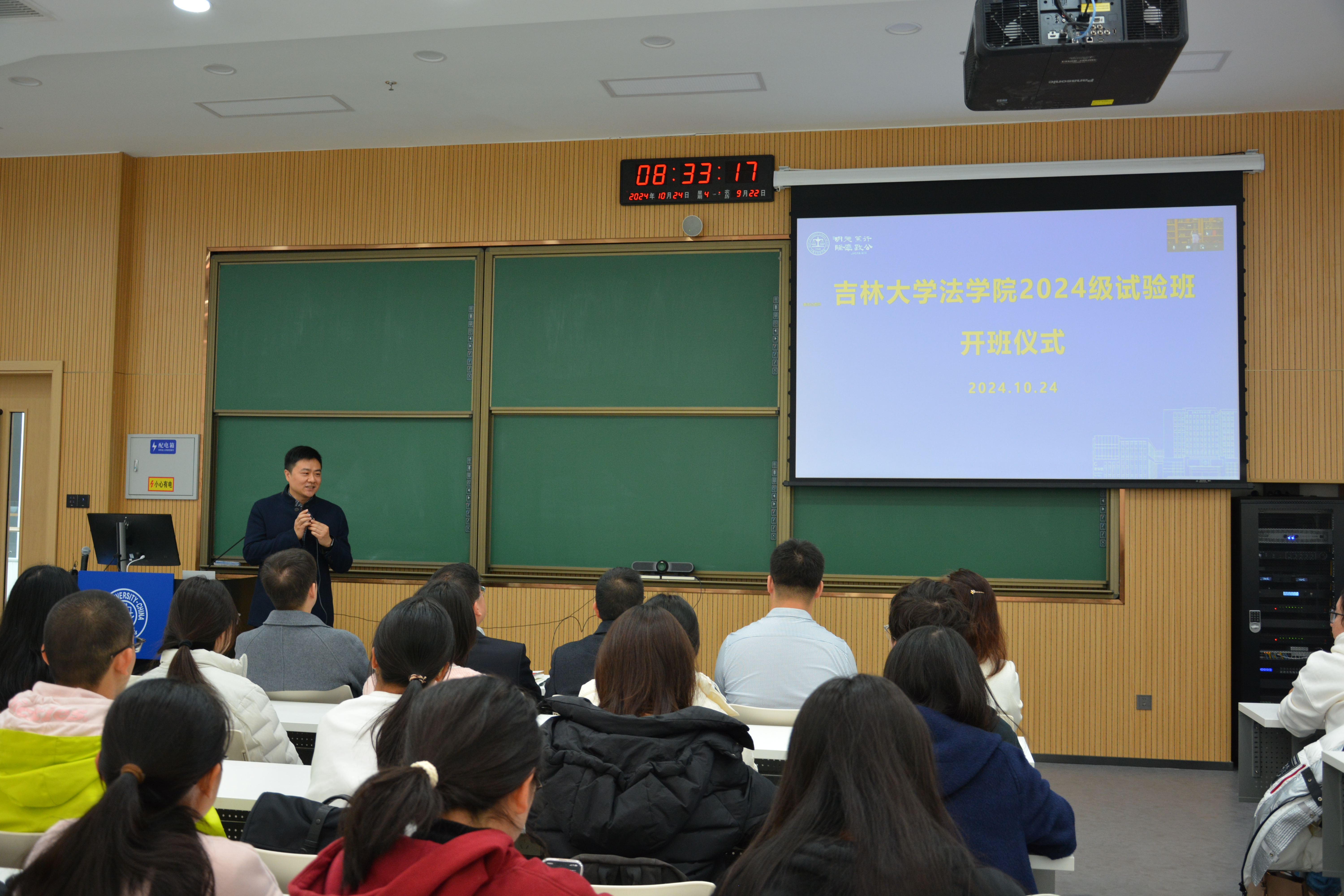 10月24日,首届吕振羽法学班和涉外法治人才培养试验班开班仪式在法学楼B304教室顺利召开。英国正版365官方网站党委常委、常务副董事长蔡立东教授,英国上市公司365经理何志鹏教授,副经理刘晓林教授,授课教师代表侯学宾教授、沈寿文教授、周晓虹副教授出席会议。教学办公室和员工办公室相关工作人员、2024级吕振羽班(法学)20位同学、涉外法治人才培养试验班49位同学一同参会。开班仪式由刘晓林教授主持。