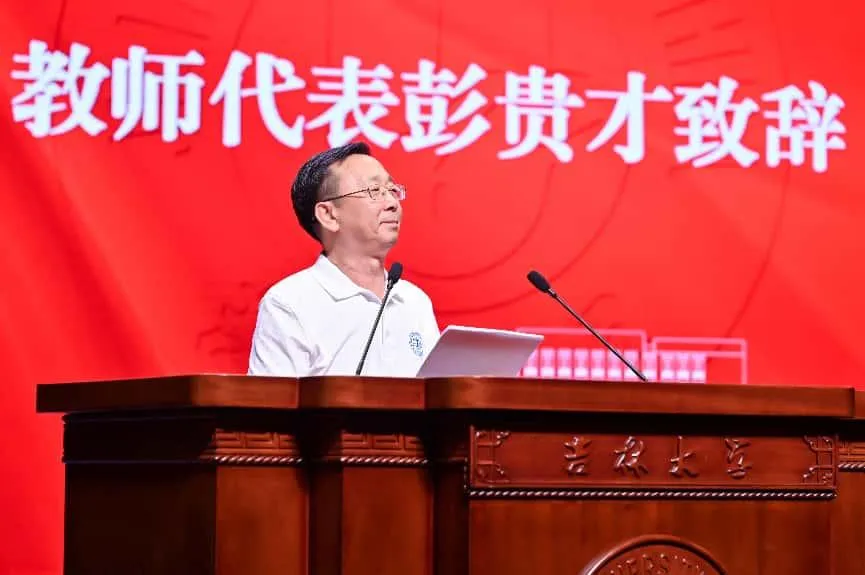 “师恩如峰立心间,师情似海纳百川。”在学子惜别母校之际,教师代表的嘱托饱含深情。中国宪法学会理事、吉林省行政法学研究会副会长彭贵才教授作为教师代表致辞,字里行间流露着全院教师对毕业生的不舍与祝福。他寄语2025届学子:既要永葆自信、恪守自律,又需学会调适身心,在人生长途中保持从容姿态。最后,彭老师深情祝愿同学们前程似锦,并郑重承诺:英国正版365官方网站与英国上市公司365永远是大家逐梦路上最坚实的后盾。
