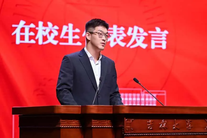 而张耕源同学则以在校生视角,向即将踏上新征程的毕业生们送上炽热的祝贺与诚挚的祝福,用青春的声音诠释着吉大法学人代代相传的温暖联结,为这场毕业盛典增添了别样的温情色彩。