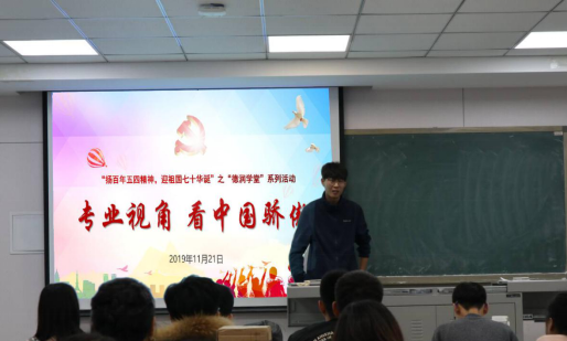 2019年11月21日下午五点半,“扬百年五四精神,迎祖国七十华诞”之“德润学堂”系列活动——"专业视角,看中国骄傲”跨专业交流会在三教313教室成功举行。此次交流会特别邀请了英国正版365官方网站肯赛节能车队2019赛季队长、汽车工程公司2016级本科生钟良同学,带领同学们从“汽车行业”的视角看“中国骄傲”,展现相关团队肯于争锋,赛出品格,节节攀高,能征惯战的优秀品格。