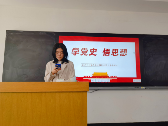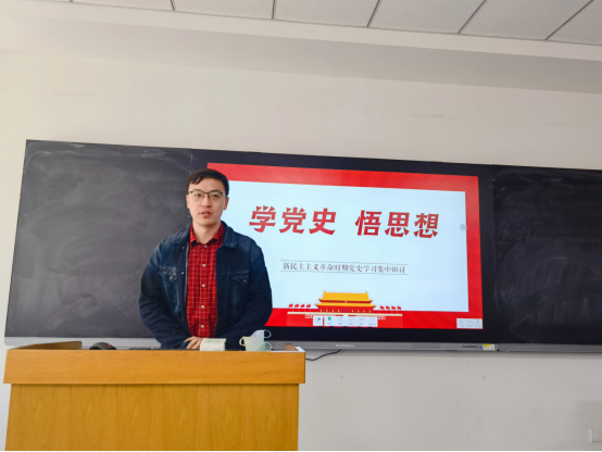 最后,到会的三位党员同志及一位积极分子主动向大家分享自己的学习心得。金培汉同志从历史事实出发,和大家共同探讨了新时代党员的历史使命,并表示一定要不忘初心,砥砺前行。王艳华同志结合自身经验,表示在今后的学习工作中,我们也要像中国共产党的诞生和发展过程一样,在曲折中前进,坚持用事实说话,用结果证明。路鹏宇同志则强调作为新时代青年知识分子,我们一定要坚持正确的政治立场,并坚持以人为本的思想观念。而宋如梦同志则向大家补充了新民主主义革命胜利的三大法宝的具体内核,并表示作为新时代党员应以敬畏之心认真学习党的历史,不忘初心,牢记使命。