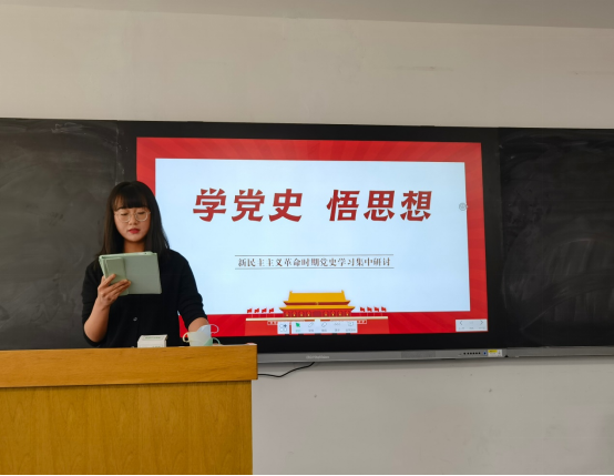 接着,2020级法学硕士第三党支部纪律委员徐宇晨作为党史领读人带大家回顾了新民主主义革命的四个历史时期、三大历史意义和四大基本经验,并带领大家一同观看了党史学习教育纪录片《复兴之路》第三集。在了解了1919年至1949年中华民族为了独立、平等、和平、统一所做的牺牲和努力后,大家充分认识到没有共产党就没有新中国,中国共产党领导下的人民民主专政是中国独立斗争的唯一出路;在了解了无数仁人志士为国家独立和解放所做出的不懈努力和巨大牺牲后,也深刻领悟到自己的历史使命和责任担当。