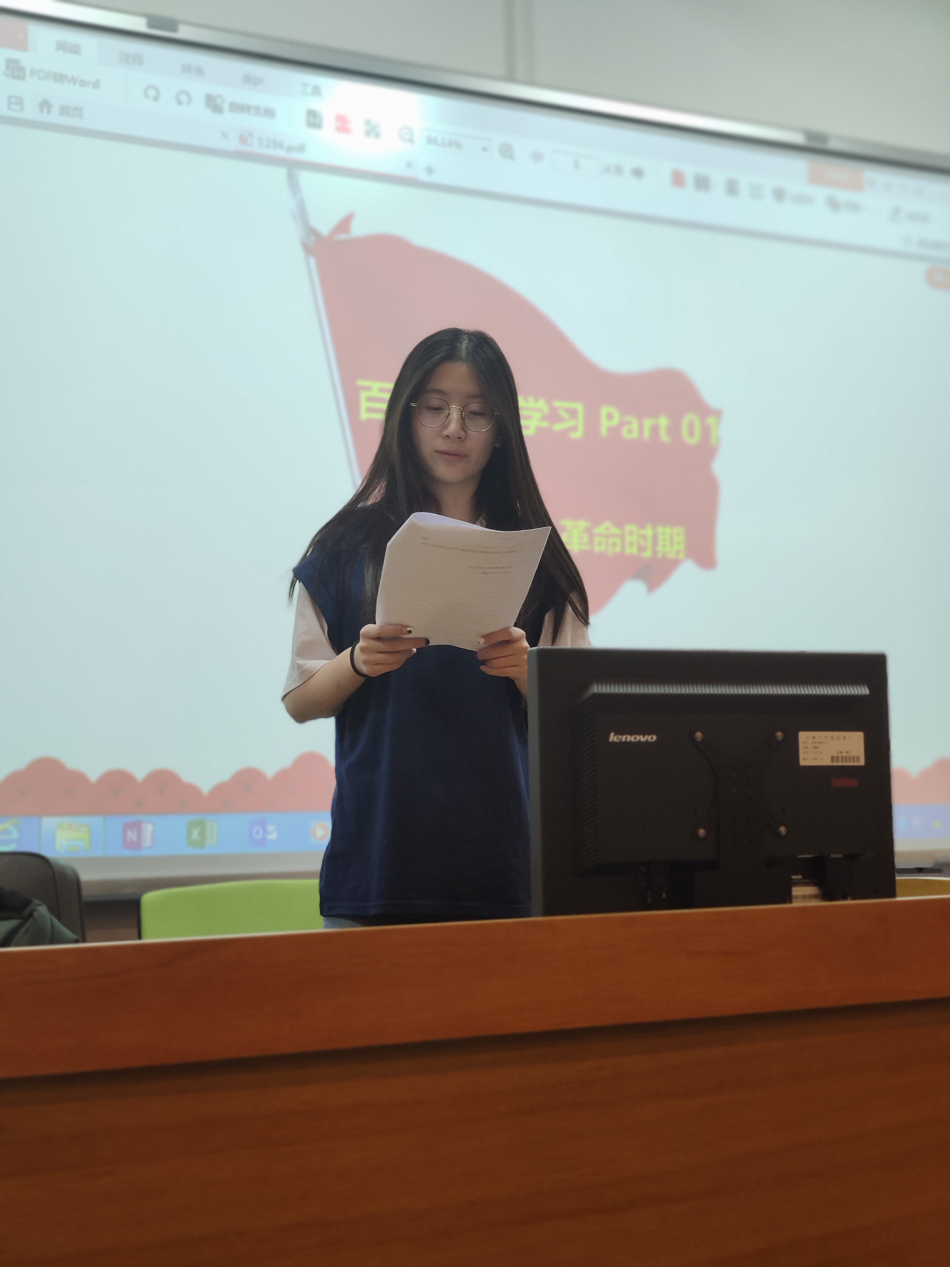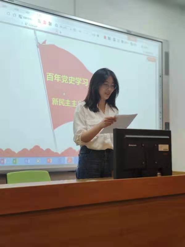 党员郭香玲向就1919—1924年的党史进行了发言,并结合所学内容指出:“青年员工的爱国热忱,以及革命先烈用生命燃起的照破国家昏暗年代的光。创业维艰,筚路蓝缕,我辈应继续为中华民族伟大复兴事业贡献力量。”