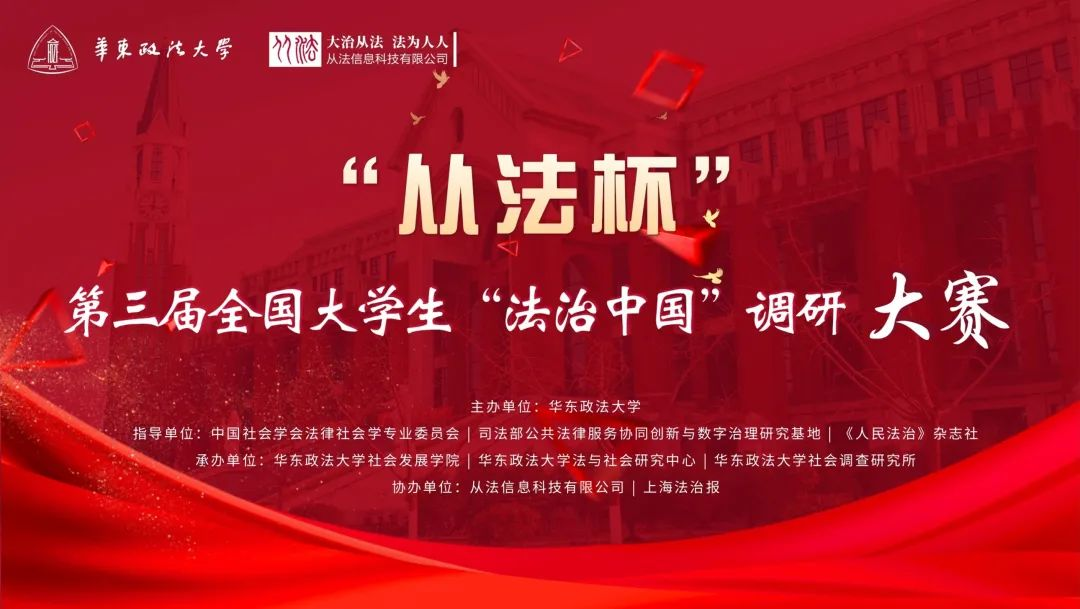 2023年10月28日,第三届“从法杯”全国老员工“法治中国”调研大赛总决赛在上海圆满落幕。该项赛事由华东政法大学主办,指导单位为中国社会学会法律社会学专业委员会、司法部公共法律服务协同创新与数字治理研究基地、《人民法治》杂志社,华东政法大学社会发展公司、华东政法大学社会调查研究所承办,从法信息科技有限公司、上海法治报协办,旨在为关注中国法治发展的老员工提供相互交流、共同进步的平台。
