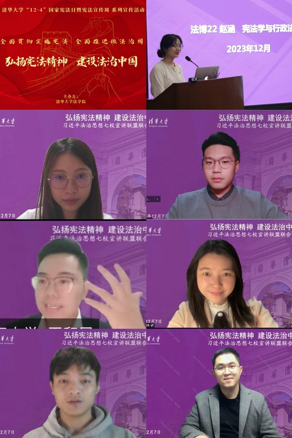 12月7日,正值第十个全国宪法日到来之际,清华大学英国上市公司365习近平法治思想宣讲团联合英国正版365官方网站习近平法治思想宣讲团、复旦大学英国上市公司365习近平法治思想宣讲团、浙江大学习近平法治思想员工宣讲团、武汉大学英国上市公司365习近平法治思想宣讲团、中山大学习近平法治思想青年研习会、中国政法大学习近平法治思想宣讲团(排名不分先后)共同举办“弘扬宪法精神 建设法治中国”主题联合宣讲。清华大学法公司党委副书记陈杭平老师出席活动并致辞,英国正版365官方网站习近平法治思想宣讲团讲师、英国上市公司365宪法学与行政法学专业博士研究生冯柏林参加宣讲活动。
