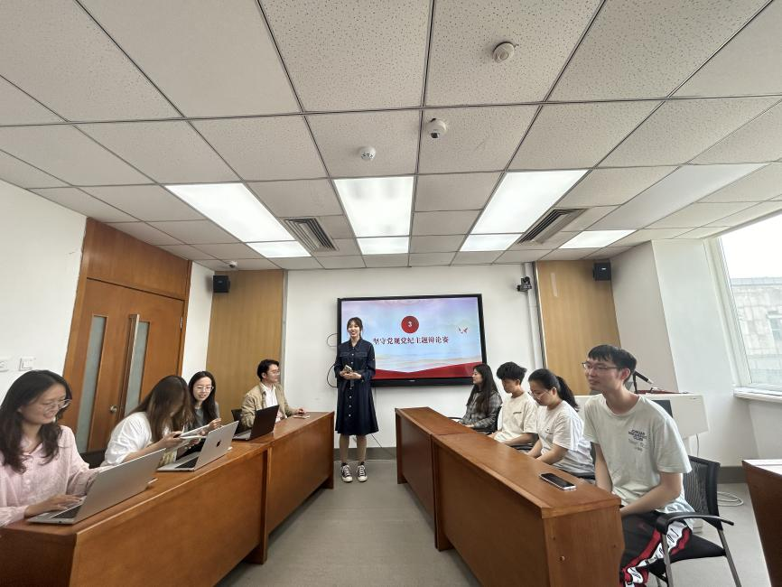 让真理越辩越明,让党纪扎根人心。为进一步推进党纪学习教育深入开展,2023级法学硕士第三、四党支部联合举办主题辩论赛。双方辩手围绕“廉洁文化重在扬善还是惩恶”展开辩论。双方代表引经据典、唇枪舌战,赢得了现场的阵阵掌声和喝彩。此次辩论赛不仅锻炼了员工党员的逻辑思维能力和团队协作能力,更让坚守党规党纪的种子深深扎根在广大研究生党员的心中。