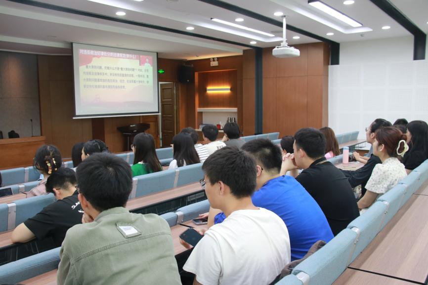 为切实加强党纪学习教育,持续提升支部的凝聚力和战斗力,坚定党员理想信念,在理论学习中淬炼党性修养、站稳政治立场,2022级法学硕士第三党支部、2022级法律硕士(非法学)第一党支部、第二党支部于6月28日举办“学党规党纪、弘清风正气”联合党日活动,本次活动由2022级法学硕士第三党支部书记王珂馨主持。