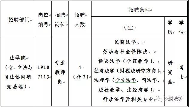 注:公开招聘方案详见天津财经大学门户网站()公开招聘专栏。