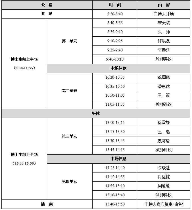 博士研究生每人汇报时间为≤15分钟。