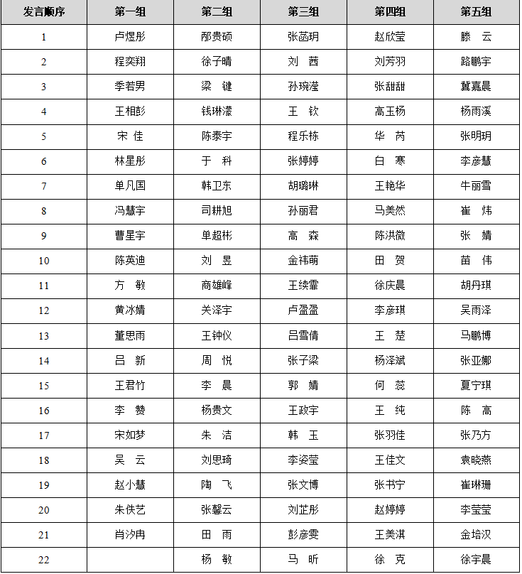 硕士研究生109人共分为5组,组内发言以5-6人为一个评审单元,保证每一评审单元内均涵盖民商方向。