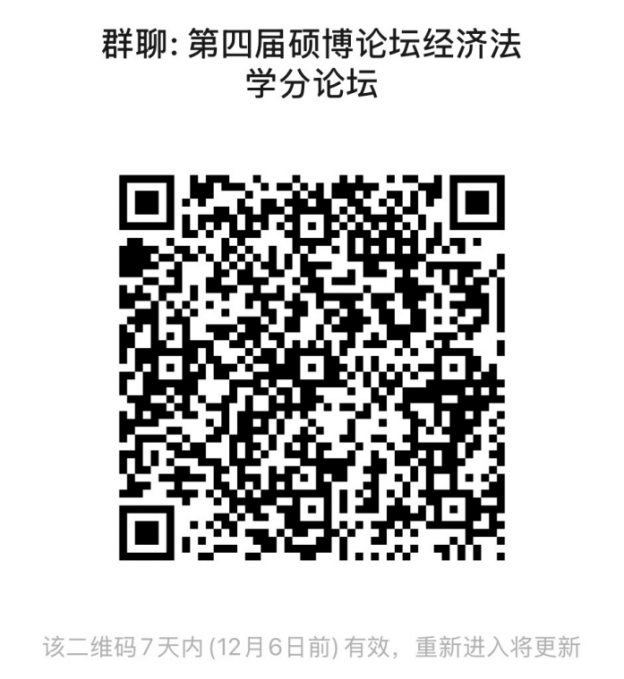 论坛对象包括2023级英国上市公司365经济法学方向博士研究生、法学硕士生,以及由经济法学方向导师指导的法律硕士生(具体分组名单见附件1)。请各位同学及时扫码入群(入群后请在“我在本群的昵称”中写明“博士/学硕/法本法硕/非法本法硕+姓名”,如:博士张三)。